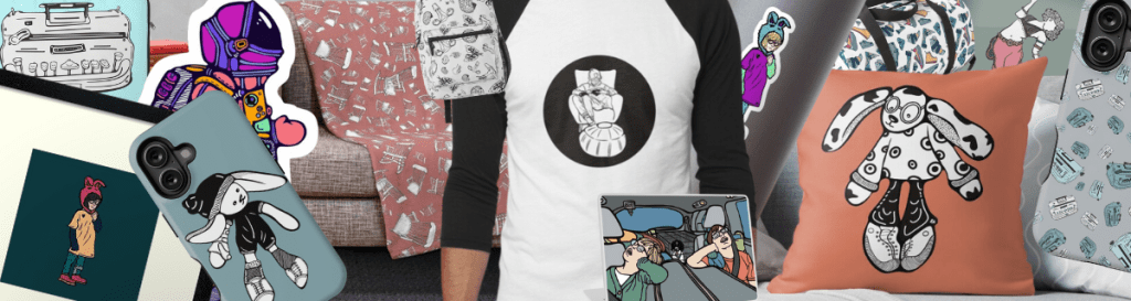 Shirts, phones, wall prints, cases, bags, socks, throws and more.